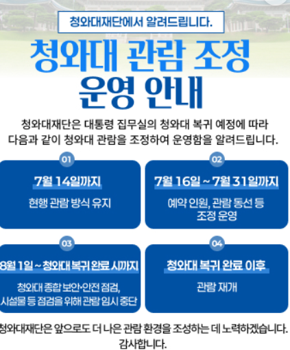 👉 아직 청와대를 방문하지 않으셨다면, 지금 바로 예약하거나 현장 신청 대상자라면 직접 찾아가보세요.